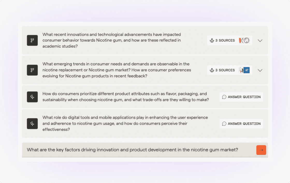You can now ask your own questions — or manually answer ones the agent didn’t complete. This gives you more control and clarity over your insights —especially when dealing with edge cases or deep research. All answers are automatically verified by our judge technology.